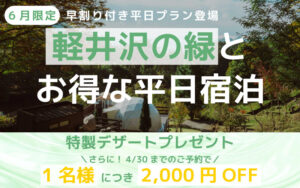 やわらかな風と木々の香りに包まれてゆったり過ごすグリーンリトリート 6月の平日宿泊予約で 特製デザートをプレゼント! さらに… \…